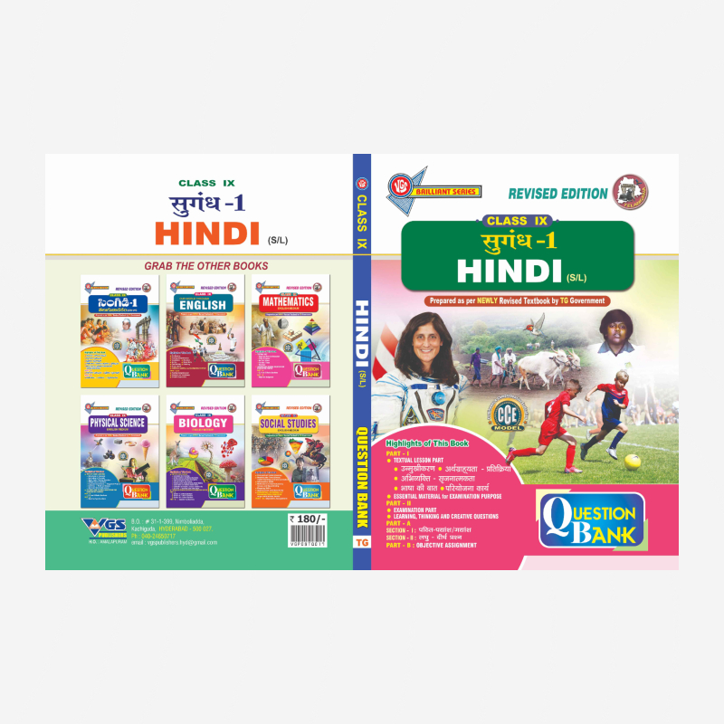 The TG 9th Class Hindi _Sugandh_1 (Second Language) Question Bank-2026 is a comprehensive and student-friendly resource designed as per the latest Telangana State syllabus and exam guidelines. This book provides chapter-wise coverage of all topics from Sugandh-1, ensuring complete preparation for the Class 9th Telugu examination.